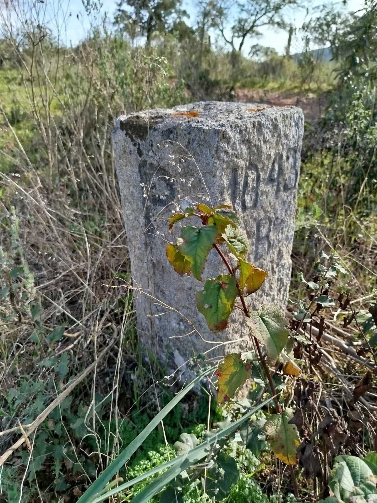 A la bifurcation, si nous allons tout droit, nous passons au Portugal. Mais les balises de la randonnée nous font tourner franchement à droite et nous entamons une belle grimpette lors de laquelle nous rencontrons nos premières bornes frontière. En pierre, avec une face comportant un P et l’autre un E, aucun doute que ce chemin est le tracé même de la frontière. Nous n’avons pas saisi la logique des numéros gravés sur les bornes, il ne s’agit pas de distance, ni d’altitude....